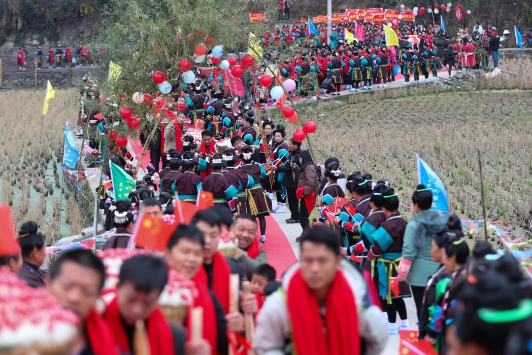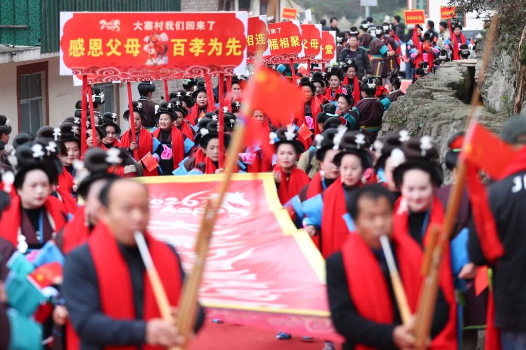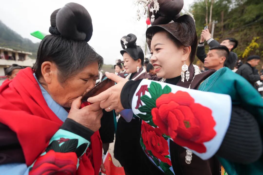 在当地苗族村寨,外嫁女儿被称作“姑妈”,新春时节集体回娘家探亲团聚,是当地世代传承的民俗。如今,这一传统习俗在新时代焕发新活力,成为苗寨增进亲情、传承文化、展现乡村幸福生活的生动场景,让浓浓年味与乡土温情在苗乡大地传递。