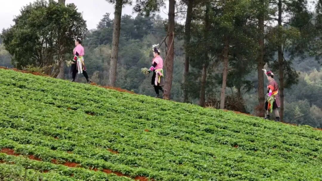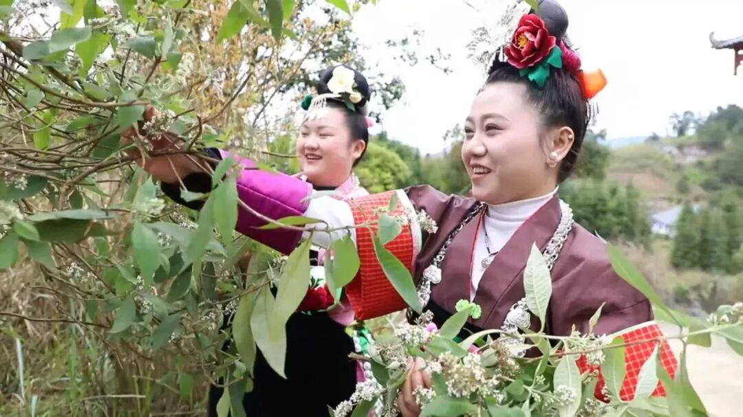 春光明媚,和风拂面。丹寨县兴仁镇摆泥村的苗家妇女们三五成群,欢声笑语地走向山野田间,寻找制作五色糯米饭的天然染料。翠绿的田埂旁,密蒙花、枫香叶等植物长势正旺,阵阵清香随风飘散。大家俯身采摘,指尖翻飞间,春色便被采入篮中。