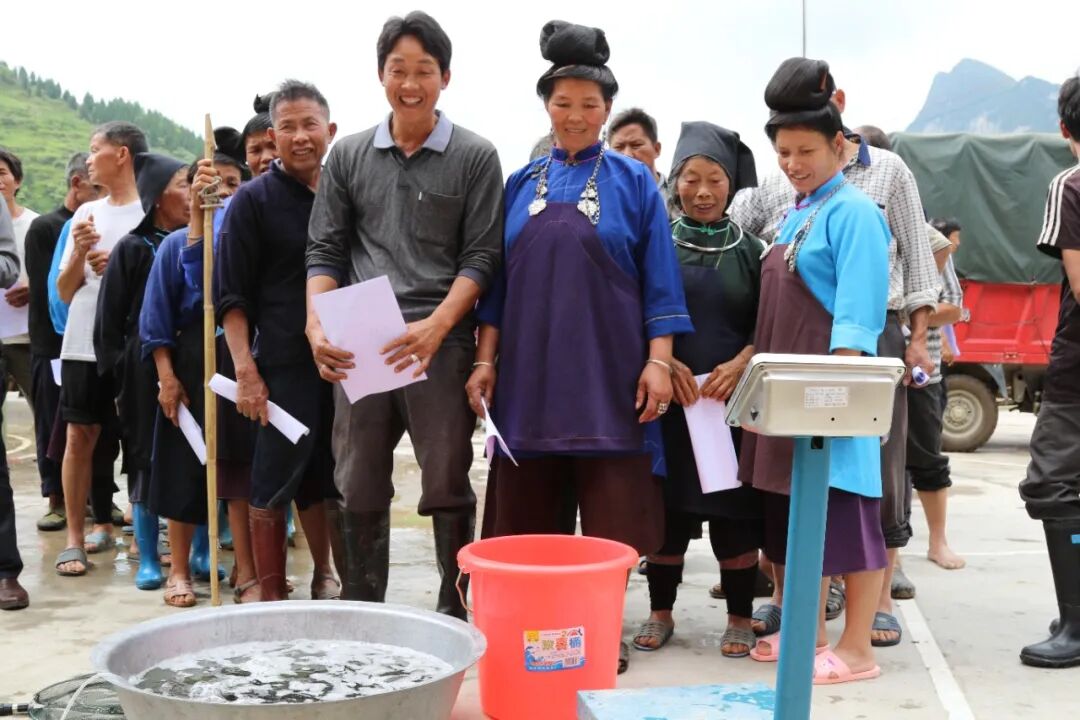 发放鱼苗现场