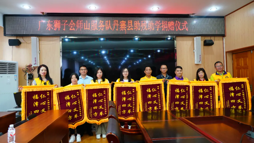 捐赠仪式上,广东狮子会师山服务队为县民政局捐赠8万元资金及物资(物资折合人民币3000元),县教育局、县残联为广东狮子会师山服务队、同济服务队、万众服务队、月亮服务队等8支服务队颁发锦旗,丹寨县受助学生代表宣读感谢信。广东狮子会8支服务队代表,县残联、县农业农村局、县教育局、县东西部协作工作专班相关负责人及受赠人员代表们参加。