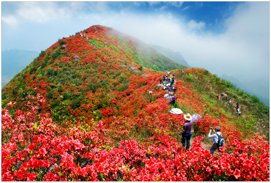 龙泉山自古以来就是旅游胜地,进入九十年代后,仿佛万物争艳,杜鹃以其最强的生命力蜂拥至峰顶,占领了最耀眼的主峰,然后向下漫延,漫山遍野,无休止地绽放着。随着旅游开发的力度加大,龙泉山日益秀丽,年年吸引着不少中外游客,尤其是在每年的四、五月间,整个龙泉山被盛开的红、白、紫三色杜鹃花所簇拥着,万顷花潮,蔚为壮观。花期如约,映红半边天,构成一幅美丽的立体山景植物画卷。远看似一团火,近看鲜美娇艳,令人心往神醉,是旅游休闲的好去处。