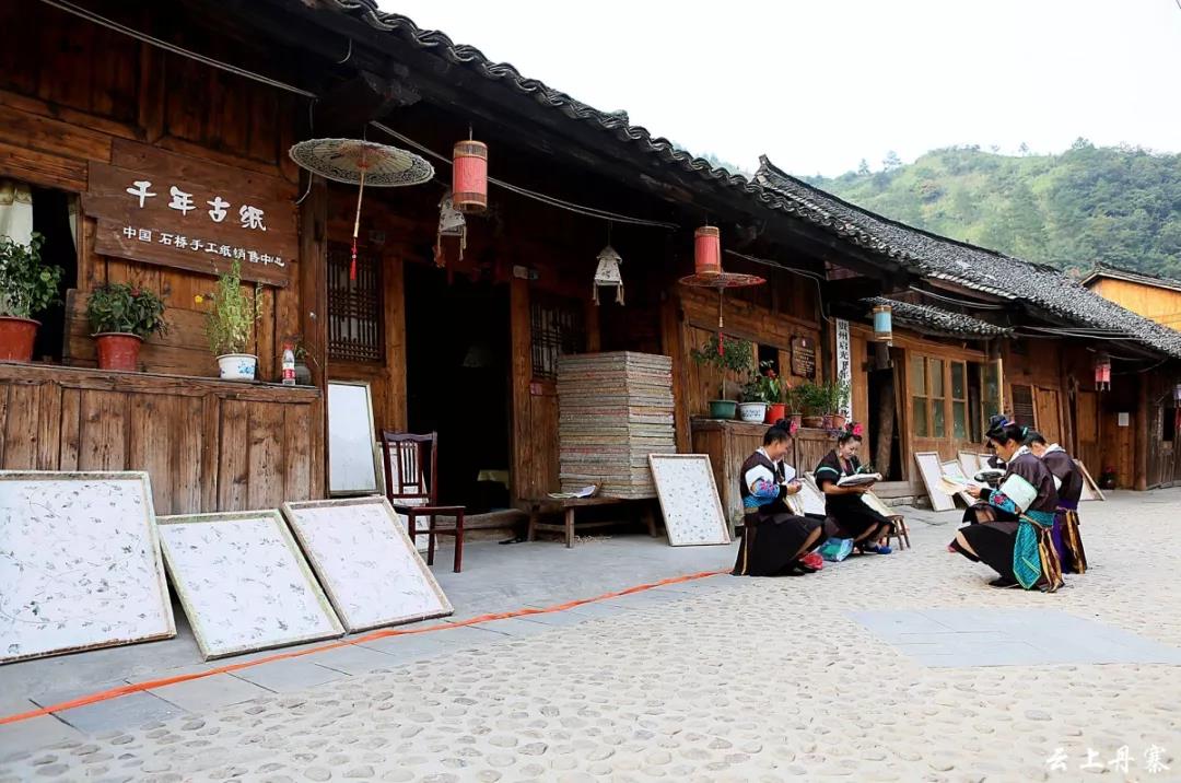 石桥人经过世代的摸索与研究已经能利用植物开发出了红色、蓝色、黄色等十多种颜色的纸张。石桥古法造纸,是大自然慷慨馈赠与人类勤劳智慧的完美结合。