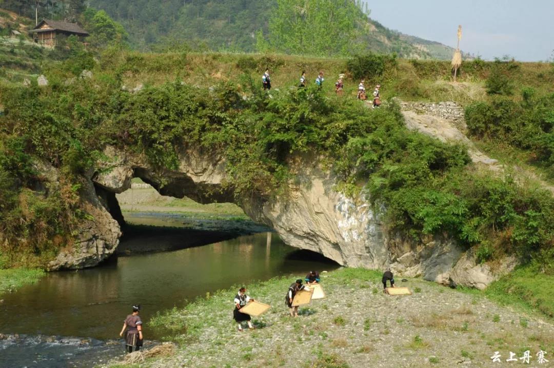 当地的一位大叔摇摇头指着更远处的石桥告诉我:“村子是因为那座桥而得名,它是天然形成的。”